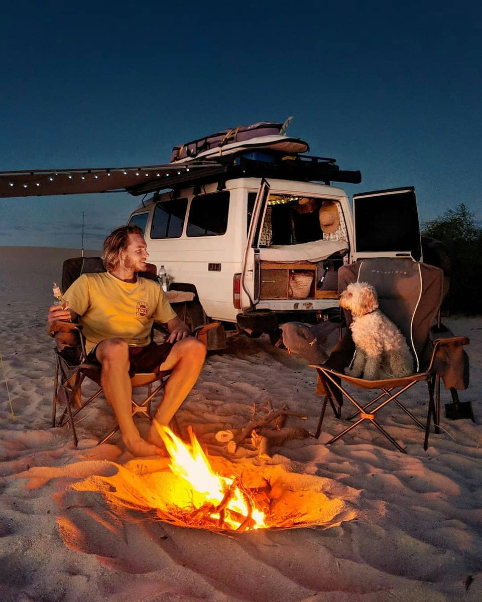 Simple things that makes you happy. Food, campfire & your besy buddy puppy.
