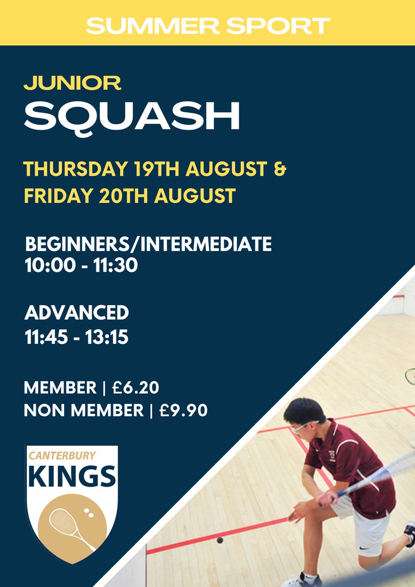 𝗦𝘂𝗺𝗺𝗲𝗿 𝗦𝗽𝗼𝗿𝘁 Basketball, Badminton & Squash Sessions running this summer. Booking available now! Call reception on 01227 595602 to secure your place!