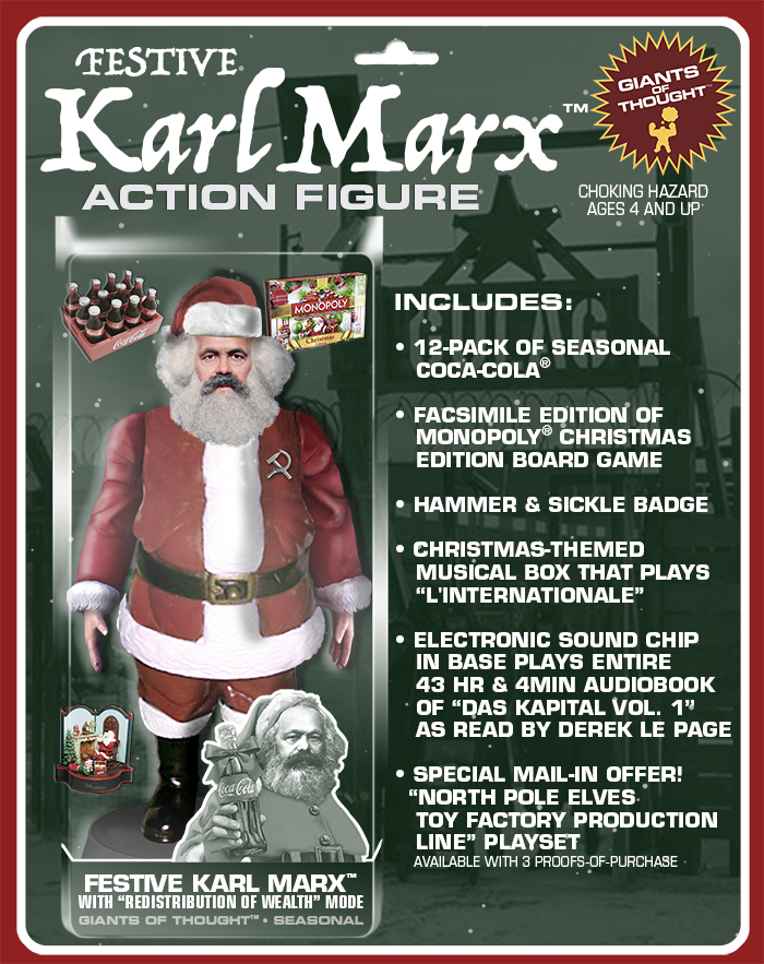 It just wouldn't be the holiday season without our FESTIVE KARL MARX™ action figure to redistribute wealth to all the little girls & boys around the world! (includes 12-pack of seasonal Coca-Cola® & Monopoly® Christmas Edition) https://www.redbubble.com/shop/ap/35889855 …