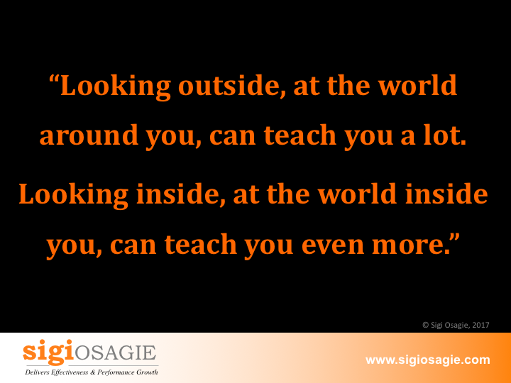 You should never be so preoccupied with what’s happening "out there" that you ignore what’s happening "in here". Your career success and overall wellbeing is determined more by what's inside than what's outside.