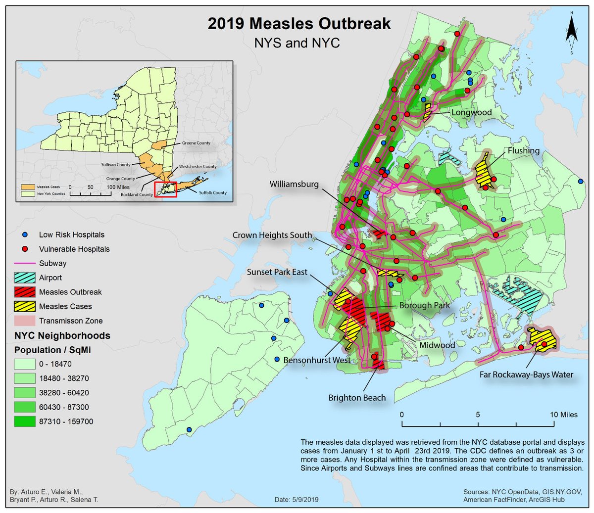 Student Map Showcase & Competition: "2019 Measles Outbreak, NYS and NYC" by Arturo Rosendo (Geography BA student)
