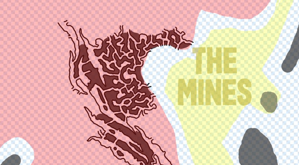 ...To get an idea of some "cave" drawing testing I was doing, you can see it here in the "Twisting Maze" zone, next to "The Mines" (the dark circle in the yellow zone indicates one of the entrances)...