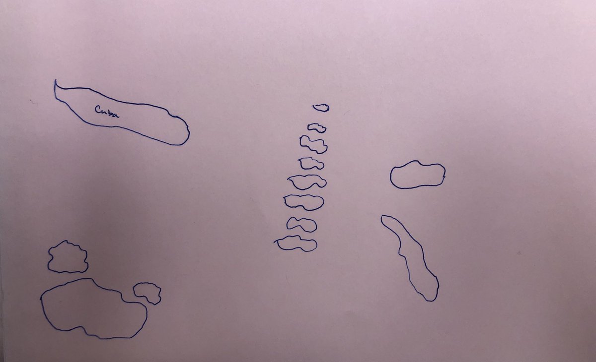 of the #Caribbean from memory. Love this archipelago cluster that was described a stacked family of islands. Spatial reasoning#Cartography pic.twitter.com/37raNIW64f