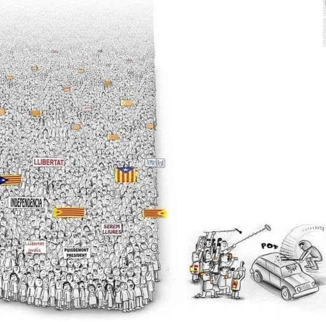 #Catalonia. The situation is pretty well illustrated below: Focus on riots, so that#EU cannot realize how many there are in reality backing up the#CatalanReferendum#tsunamidemocractic#MarxesPerLaLlibertatpic.twitter.com/FHzs2lklwJ