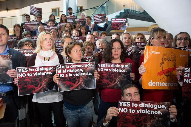 YES to dialogue. NO to violence. Rajoy must resign. MEPs protest in EU Parliament today