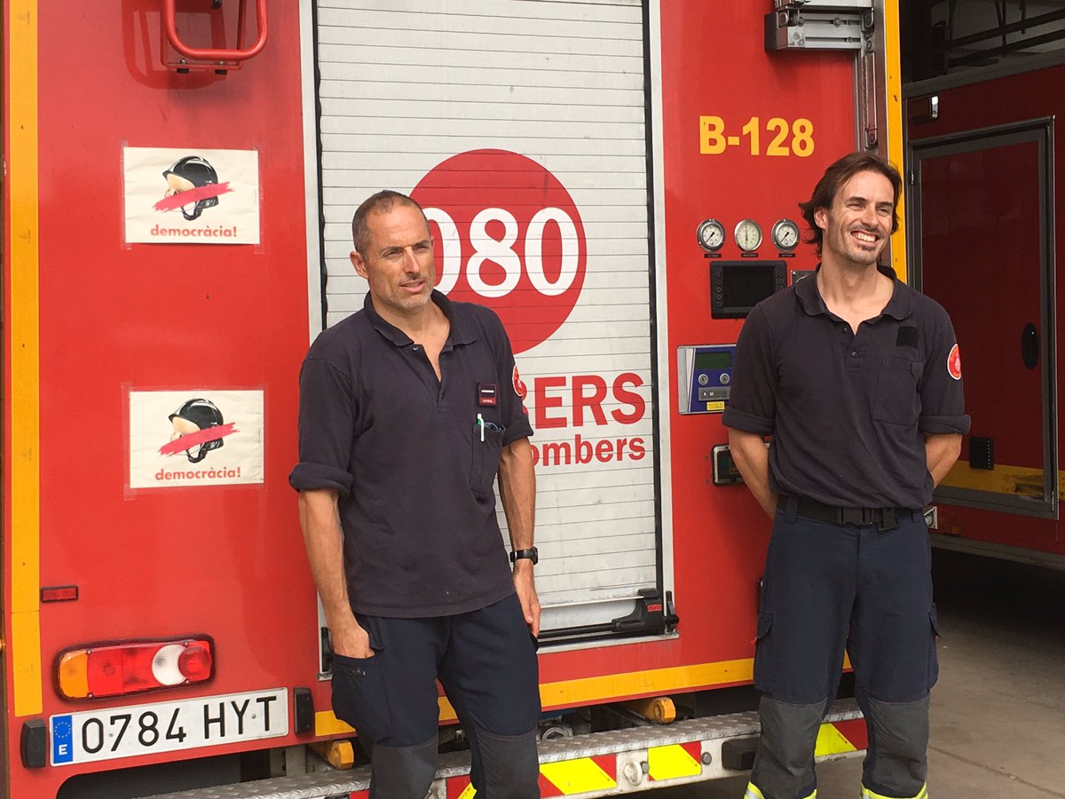 Chatting with members of the Barcelona fire department about their role in