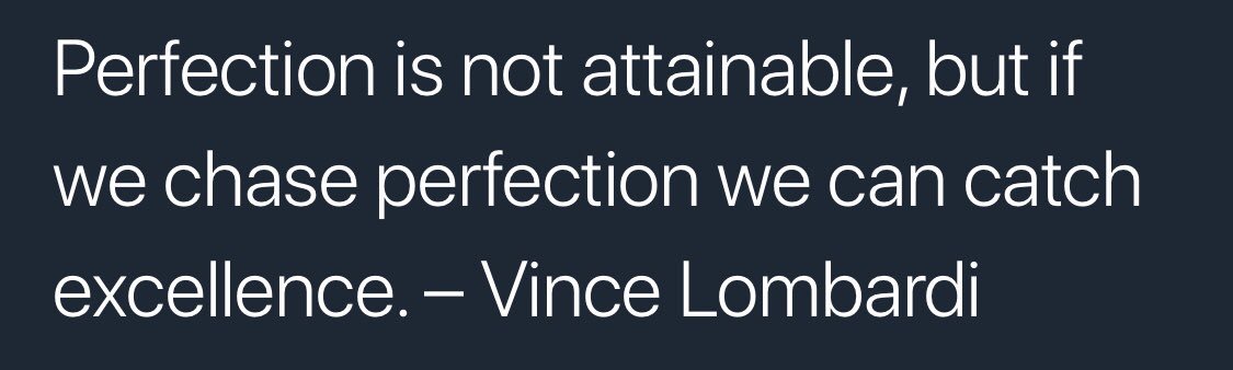 "Perfection is not attainable but if we chase perfection we can catch excellence."-Vince Lombardi