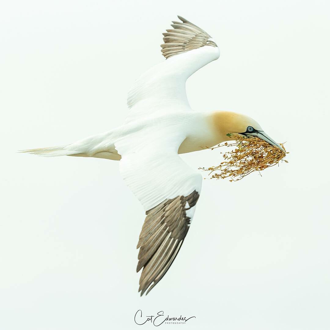 A Northern Gannet (Morus bassanus) bringing back some nesting material. © Cat Edwardes Photography