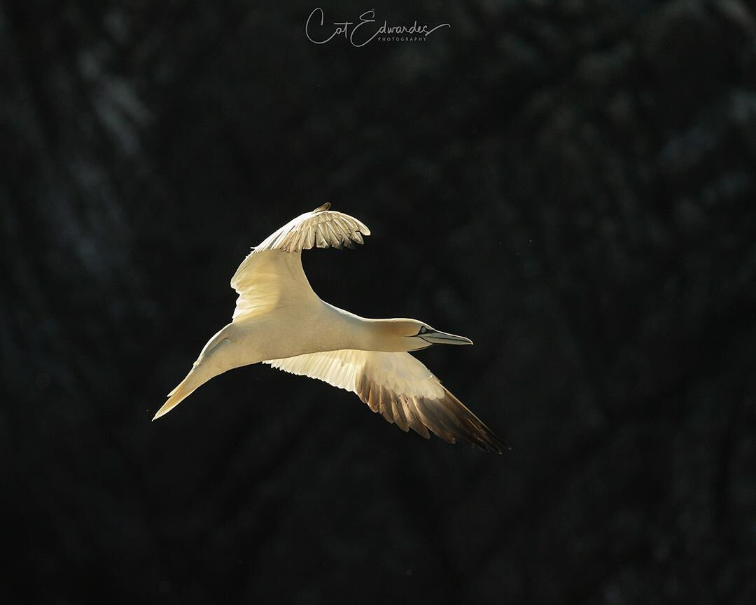 There was a small dark bit of rock which enabled me to capture the gannets backlit as they flew towards the colony. © Cat Edwardes Photography