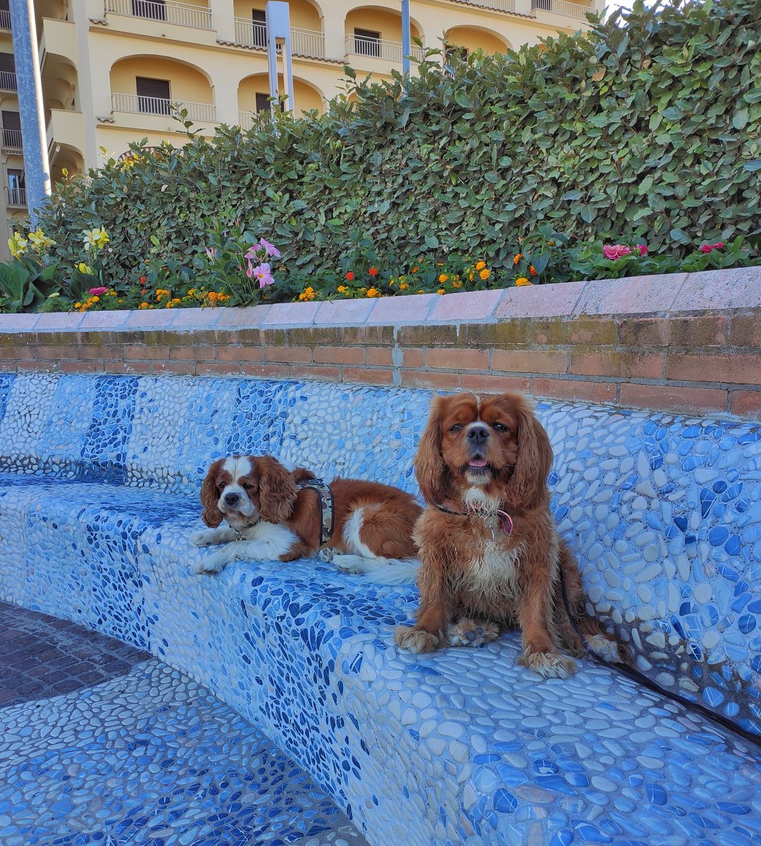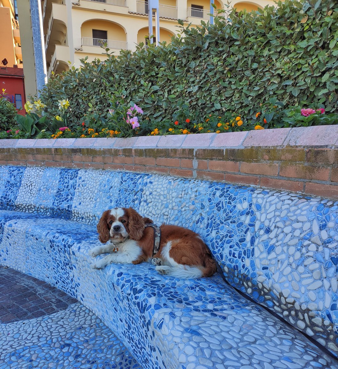 A nice walk full of interesting smells and then I found the pawfect place: a blue bench on a large square where I could sit and soopavise people with their dogs going back and forth