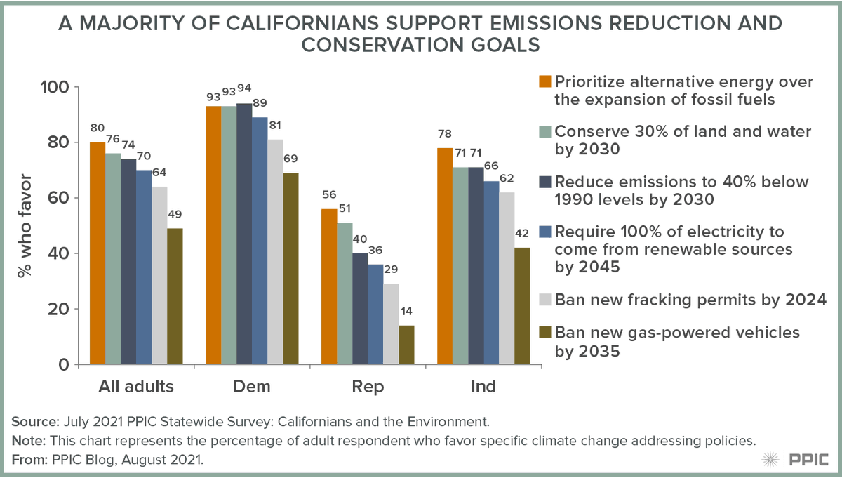 #climatechange policies. There is widespread approval of carbon emissions reduction policies and conservation, across party lines.#CAwater#CAdrought https://bit.ly/3rU7dnM pic.twitter.com/BExC5hyHEW