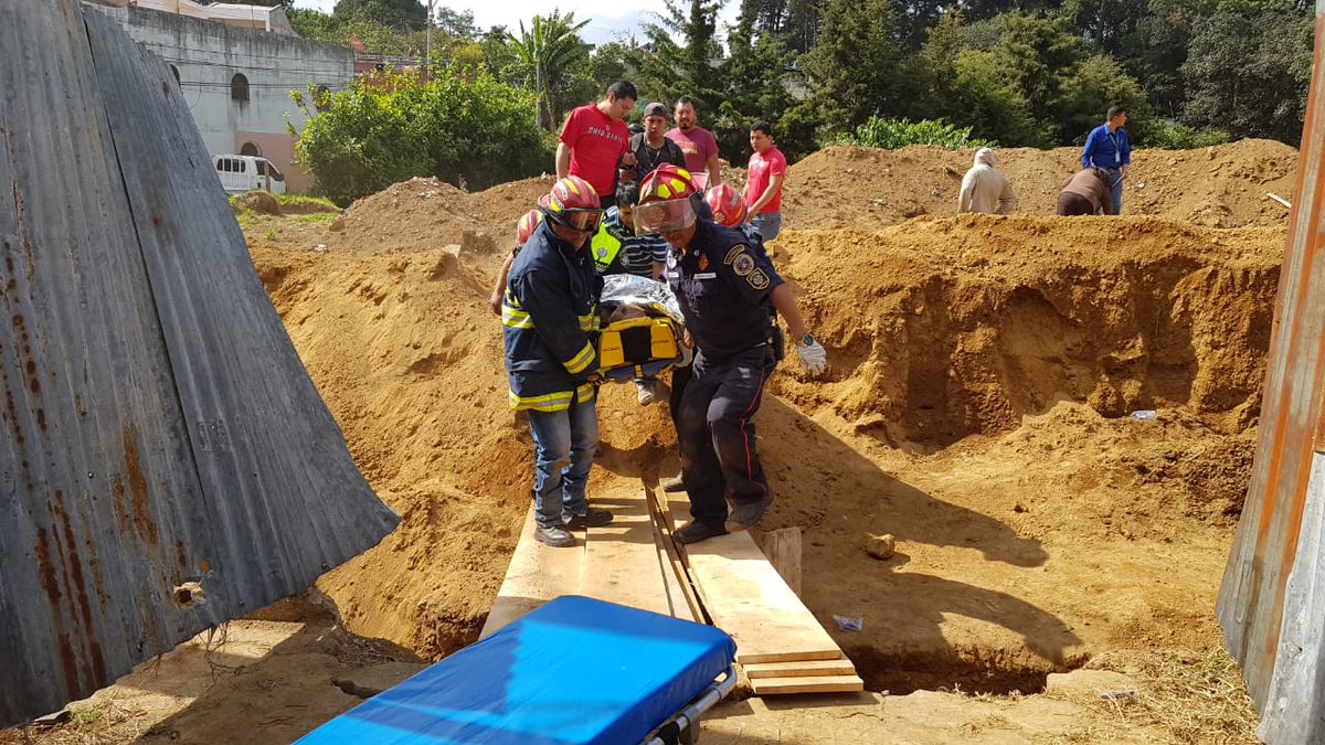 #CBMD posterior a que un muro de tierra se desprendiera y lo deja soterrado mientras realizaba trabajos en una zanja en San Bartolomé Milpas Altas. Fue trasladado al Hospital Nacional de Antigua. pic.twitter.com/i1YDBQHEHx