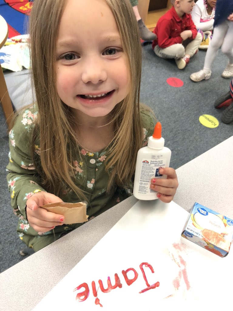 Exploring our 5 senses & using Jell-O to write our name. Scratch & Sniff names?! Who knew? P.S., we may or may not have lucked our fingers to sample the Jell-O. I’m not telling.