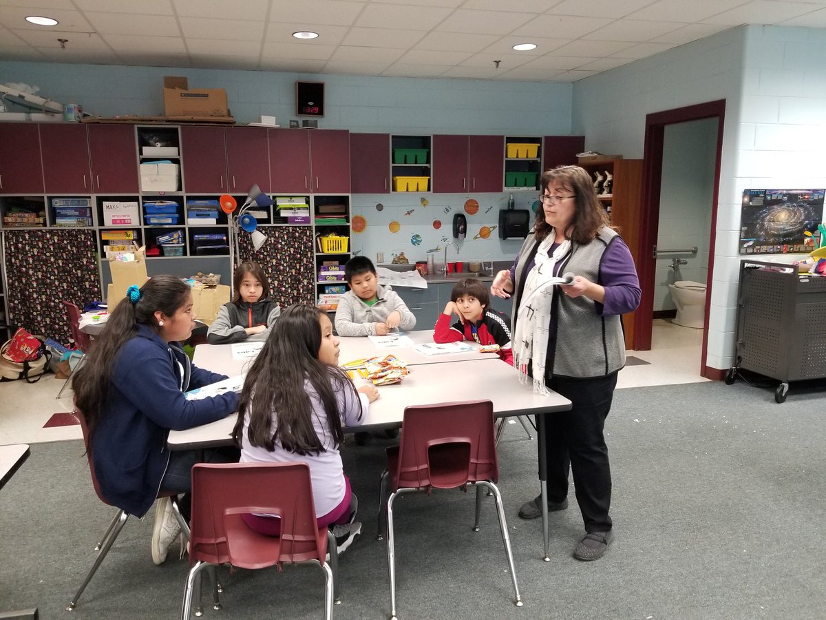 2nd and 8th graders are working on fun groundhog facts. Now, they will make a prediction: Will groundhog see his shadow...or not?