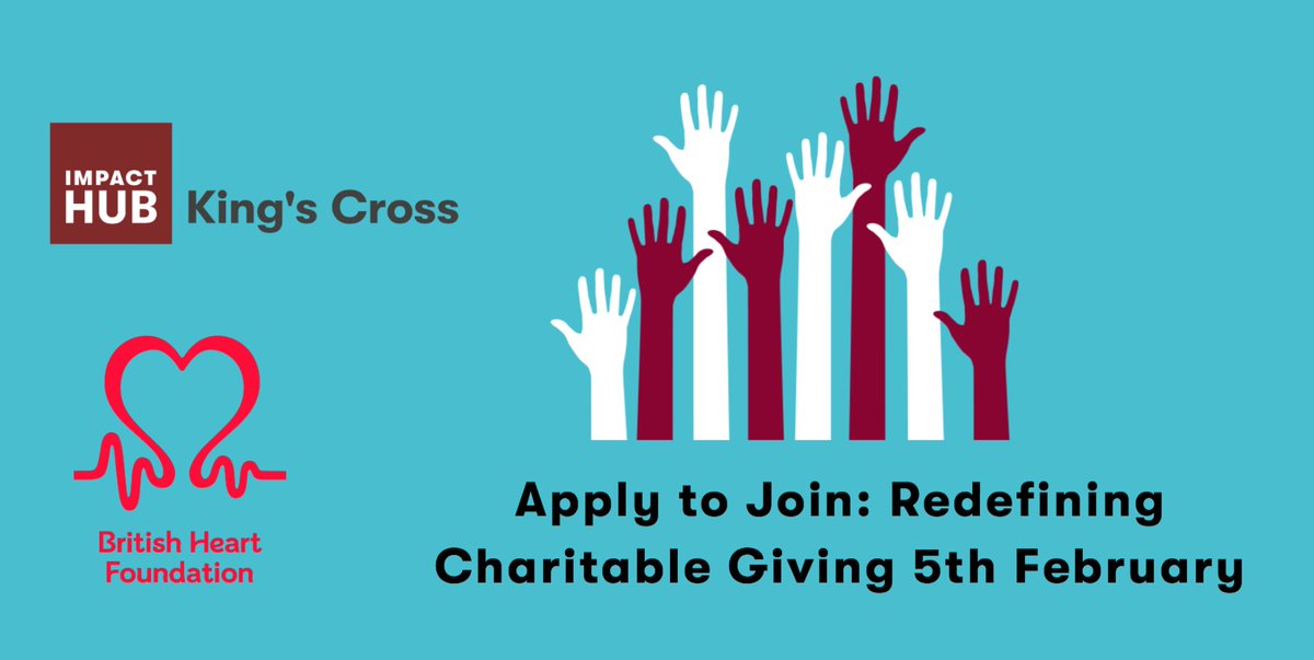 #hearthealth supporters! Apply to join us with British Heart Foundation on 5th Feb to create ideas for new ways of#charitablegiving. You could get £100 to donate to your fave#charity - contact alisa.brown@impacthub.net this week to apply!pic.twitter.com/Fr5IeIFFIQ