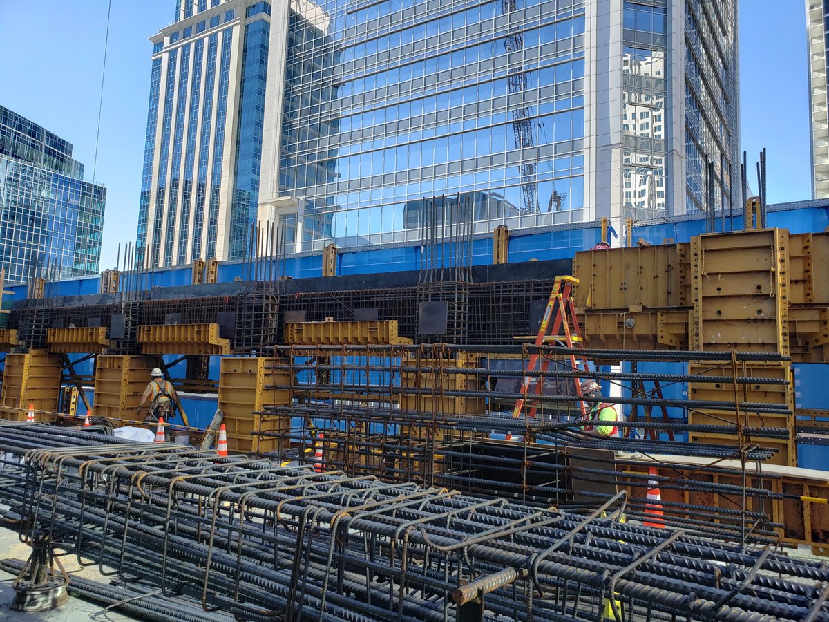 The Batson-Cook team working at Charlotte Metro has finished the erection of a self-climbing formwork system that will climb with the structure, one quadrant at a time, and assist with the creation of concrete forms