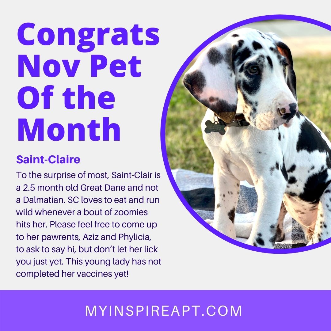 Congratulations Saint-Claire! Inspire's November Pet of the Month! Thanks to all our wonderful pet photo submissions.