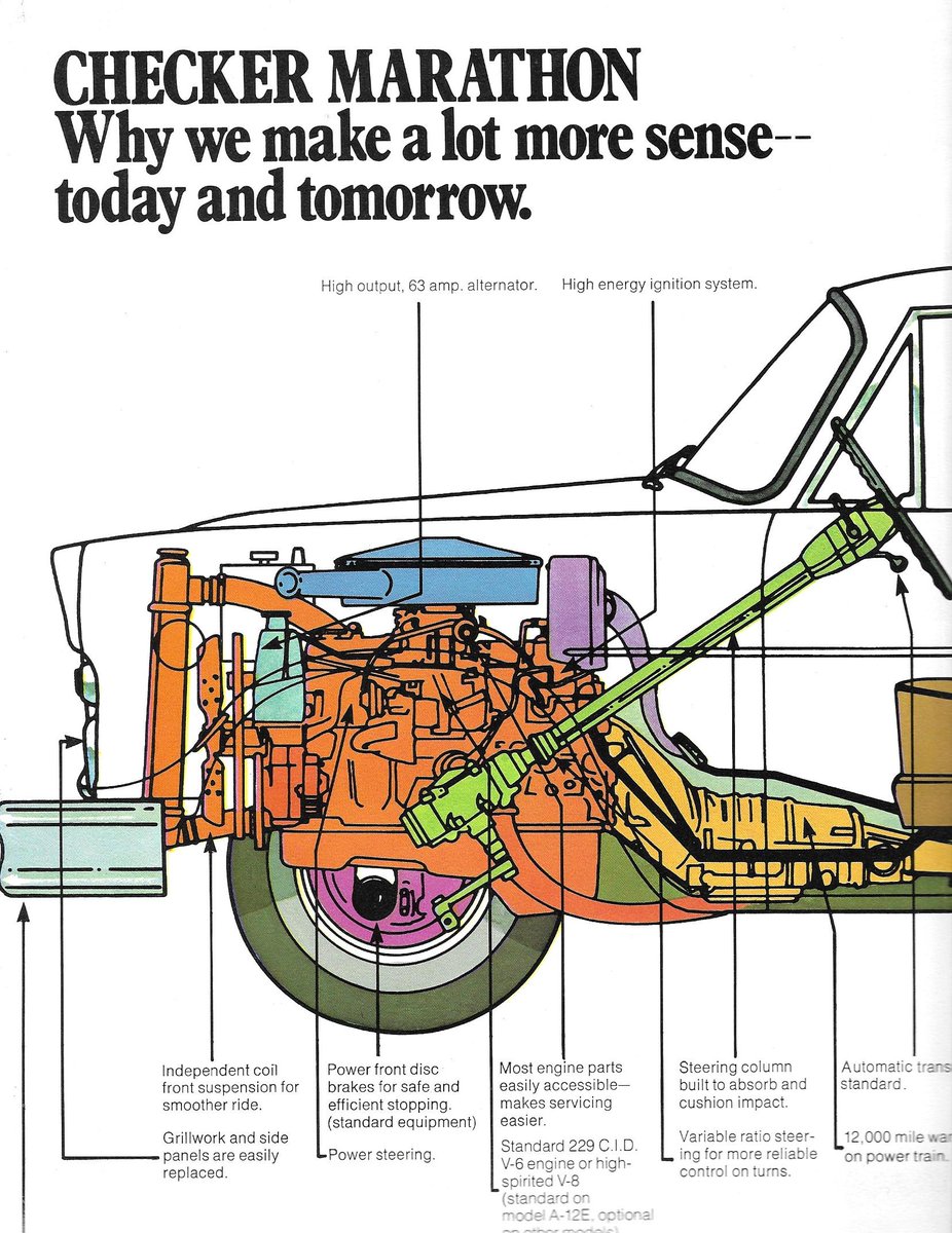 Taxi! The silhouette of the Checker cab is still recognisable globally today, but the company nominally sold cars for private use too. This 1980/81 brochure is from towards the end of the road for the firm, featuring the Marathon and extended A-12E model.