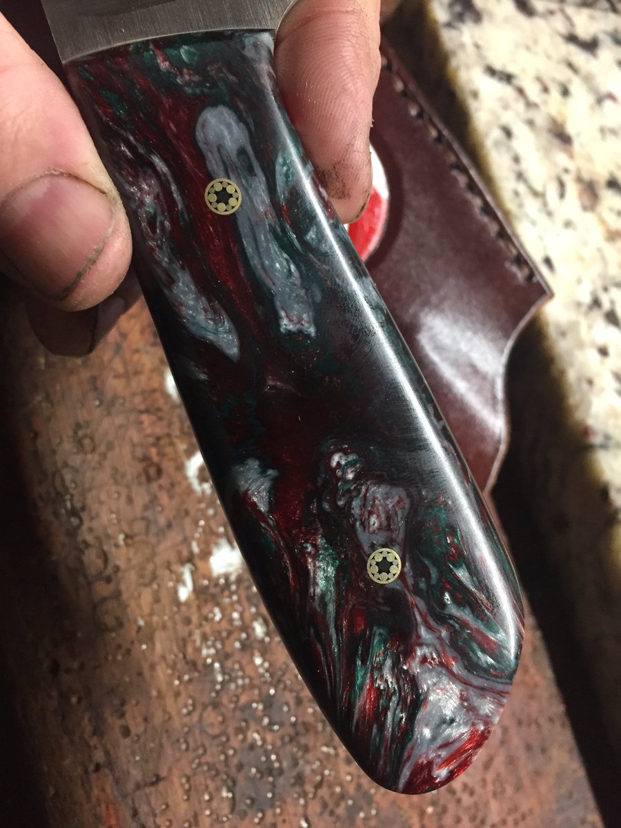 Finished a small paring knife for Karin today. Made of San Mai steel with a handle of faux marble.
