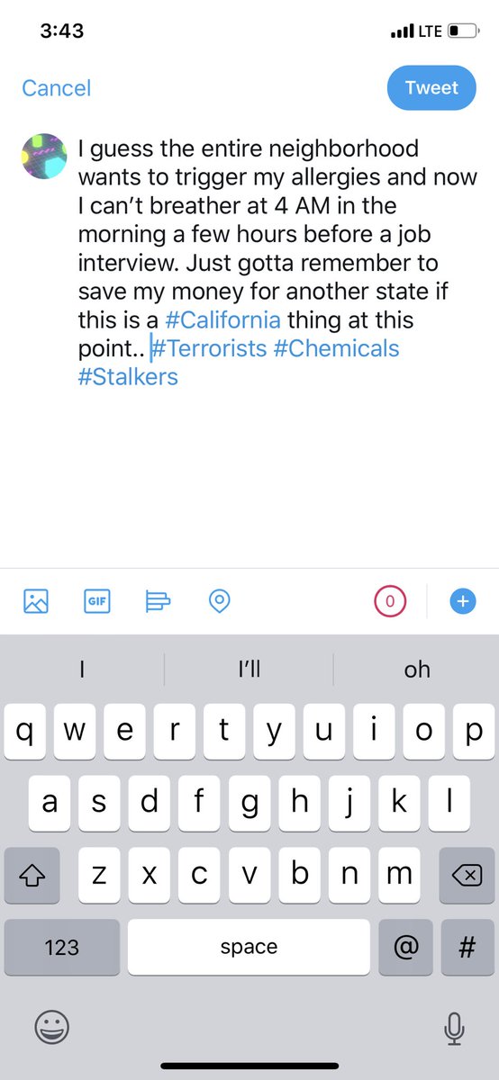 #California thing at this point..#Terrorists#Chemicals#Stalkerspic.twitter.com/ct4nmgxf0g