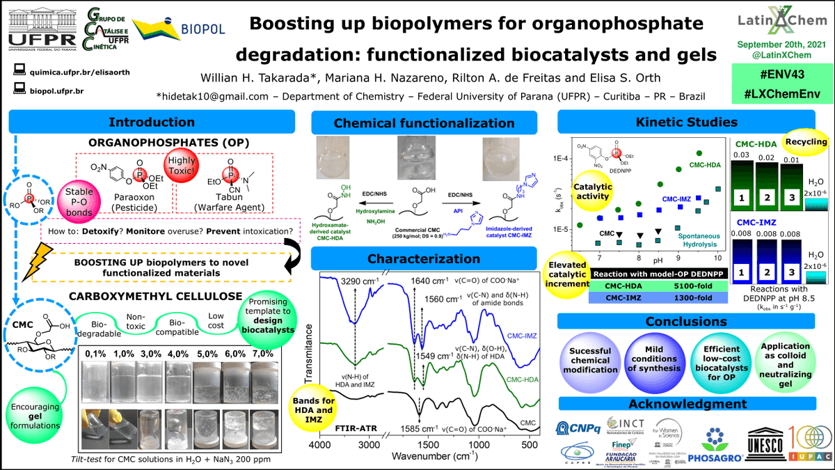 @LatinXChem! Here are some recent results of my work “Boosting up biopolymers for organophosphate degradation: functionalized catalysts and gels”#LatinXChem#LXChemEnv#Env043#Carboxymethylcellulose#Pesticides#ChemicalWeapons#Biomaterialpic.twitter.com/IdwA2draFH