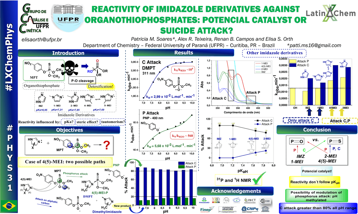 @LatinXChem! This is my work " Reactivity of Imidazole Derivatives Against Organothiophosphates: Potencial catalyst or suicide attack?".#LatinXChem2021#LXChemPhys#Phys031#Pesticides#ChemicalWeapons#Imidazole#Methylparathion#Organophosphatespic.twitter.com/miJ8JEqgxL