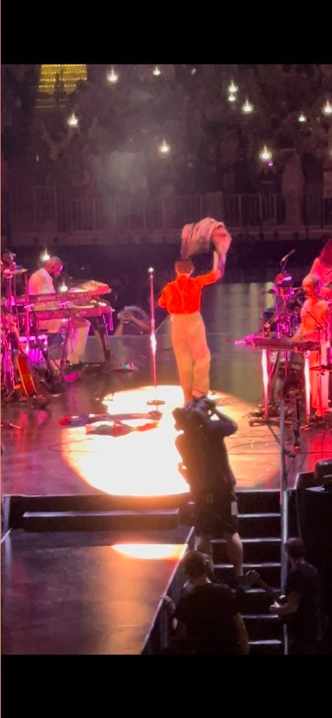 Harry waving and setting down a Black Lives Matter flag to keep during Fine Line tonight.