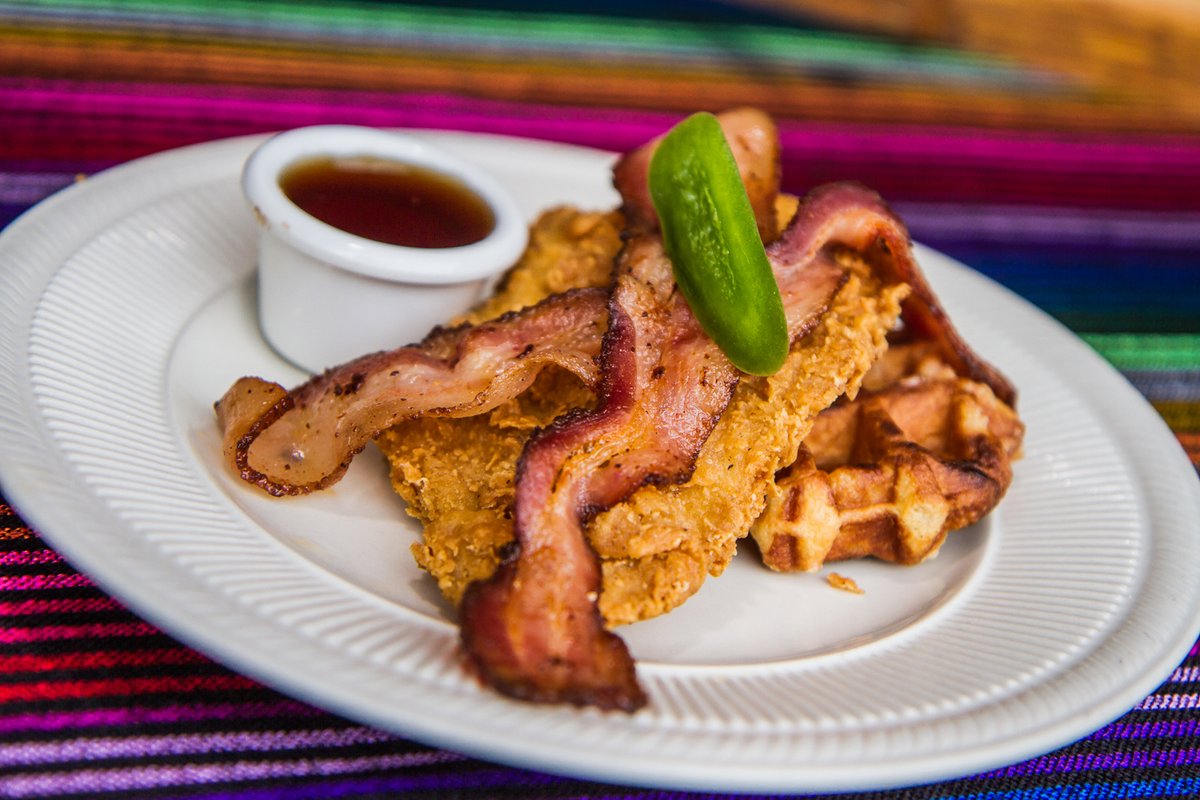 #CesarsChicago#ChickenAndWaffles#MexicanBrunch A comfort food with a south of the border twist. Juicy fried chicken, served with a sugar pearl waffle and spicy jalapeno glazed bacon. View Brunch Menu: http://ow.ly/67bQ50yajER pic.twitter.com/Voy85mEGm6
