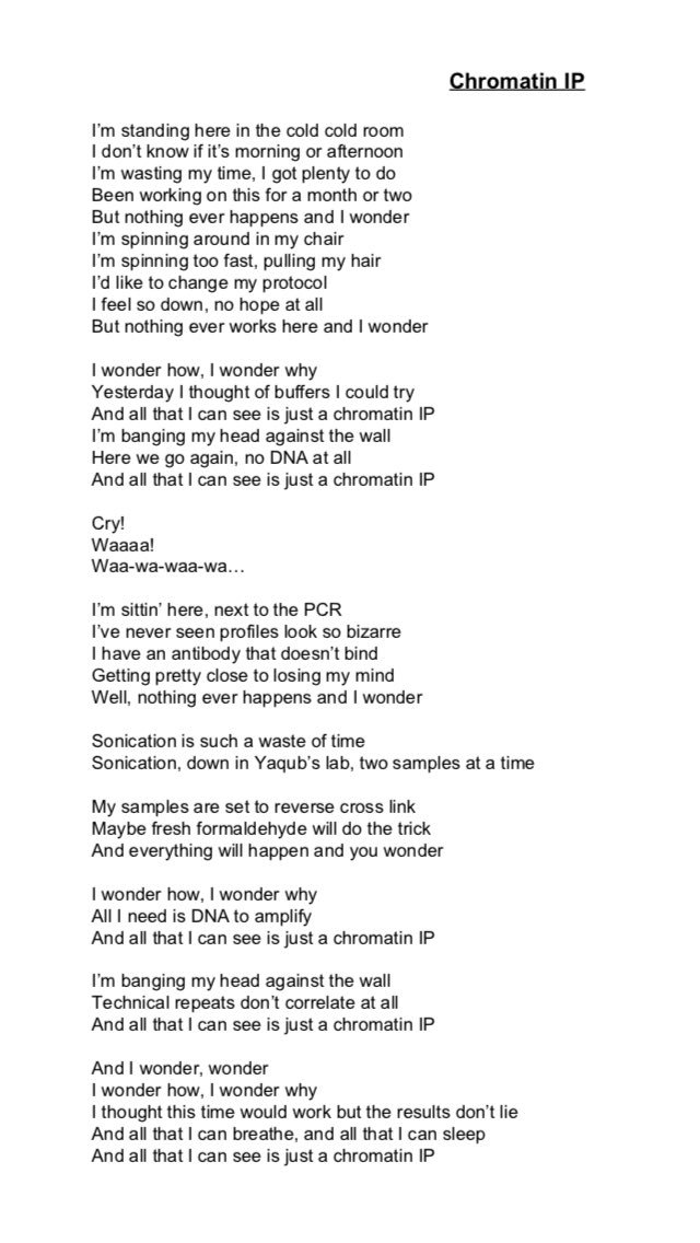 @BarkaiLab wrote a song about#ChIPseq (to the tune of Lemon Tree)... enjoy! Karin is working with@voichek on expression homeostasis during#DNA#replication