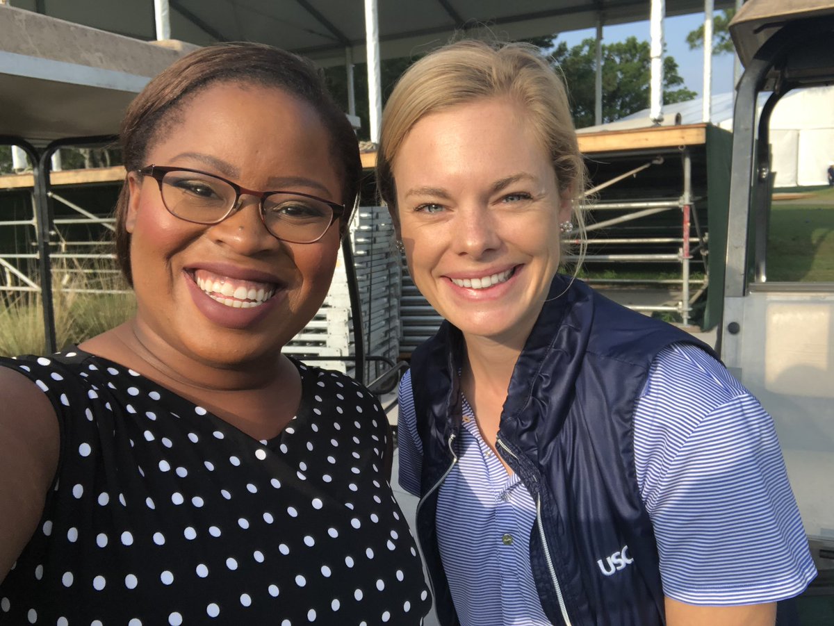@winthropalumni Allison Lee who is helping coordinate this year’s@uswomensopen here in Charleston. 15,000 are expected tournament weekend, May 30-June 2. Both of us were student athletes