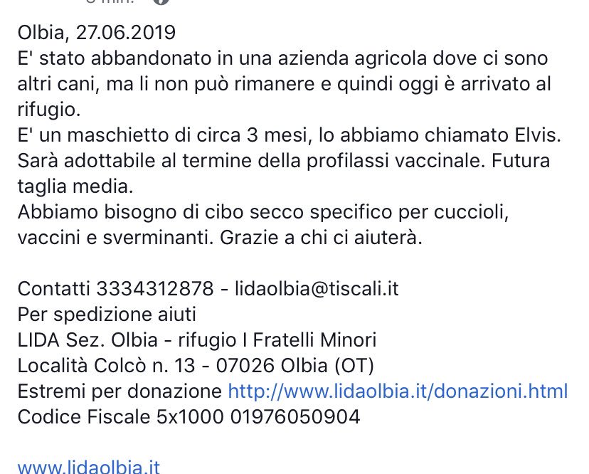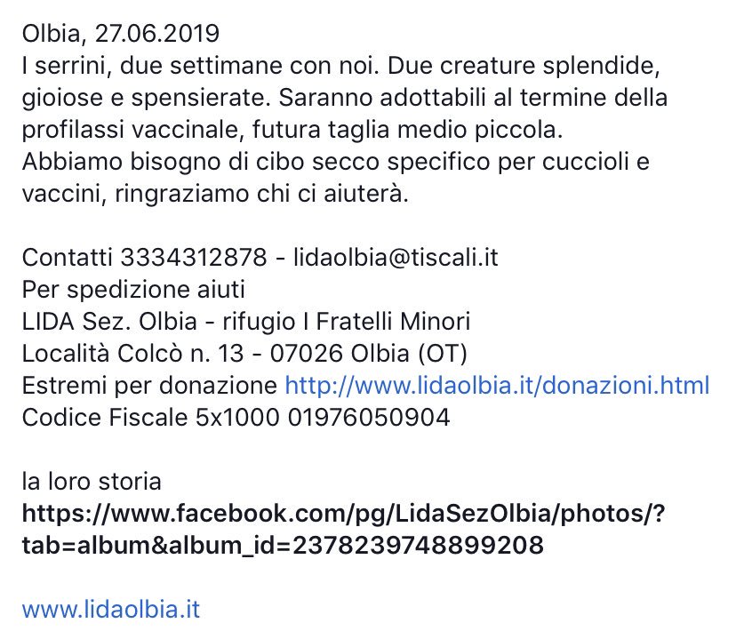 #cibo specifico per#cuccioli. Contatti 3334312878 - lidaolbia@tiscali.it Per spedizione aiuti LIDA Sez. Olbia - rifugio I Fratelli Minori Località Colcò n. 13 - 07026 Olbia (OT) Estremi per donazione http://www.lidaolbia.it/donazioni.htmlPrikaži ovu nit -