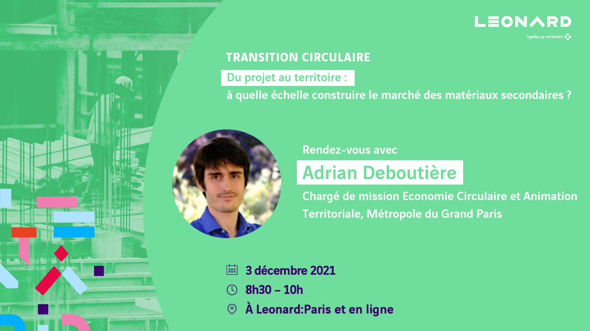 Meetourspeaker - RDV le 3 décembre à 8h30 avec Adrian Deboutière, qui présentera les actions mises en oeuvre par la Métropole du Grand Paris pour accélérer la #transition#circulaire du secteur de la construction avec l’ensemble des acteurs...