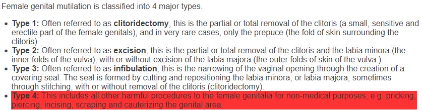 #FGM Type 4 not compareable to#circumcision? https://www.who.int/news-room/fact-sheets/detail/female-genital-mutilation …pic.twitter.com/3JEgp7leI7