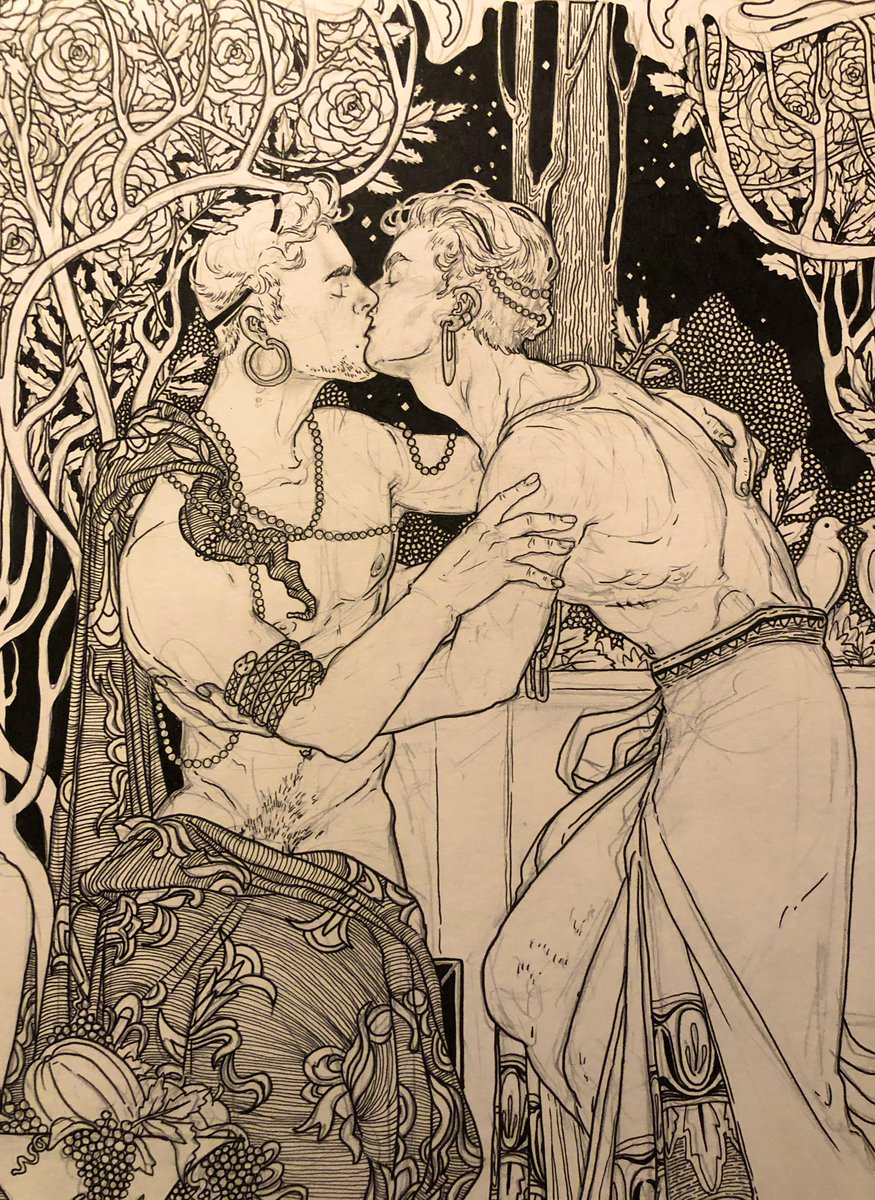 Here's a WIP of my piece for @Nova_Mali 's "Classics but make it gay" zine! Kickstarter is now LIVE!