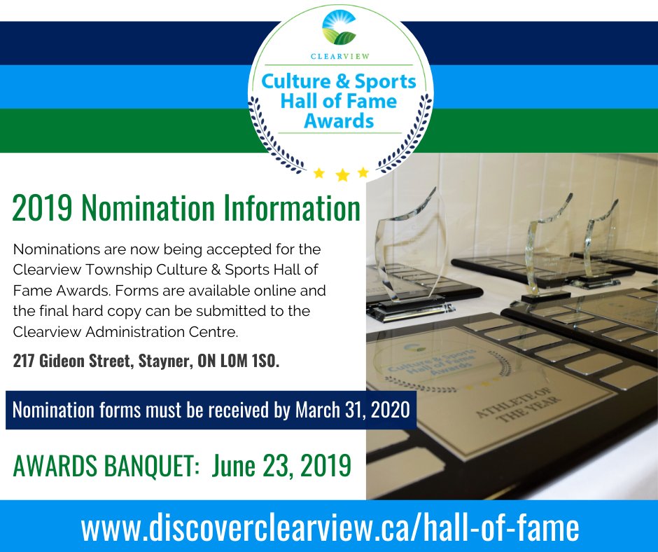#Clearview Township Culture & Sports Hall of Fame Awards. Nomination forms are available online here, http://www.discoverclearview.ca/hall-of-fame pic.twitter.com/LNG24BLDzt