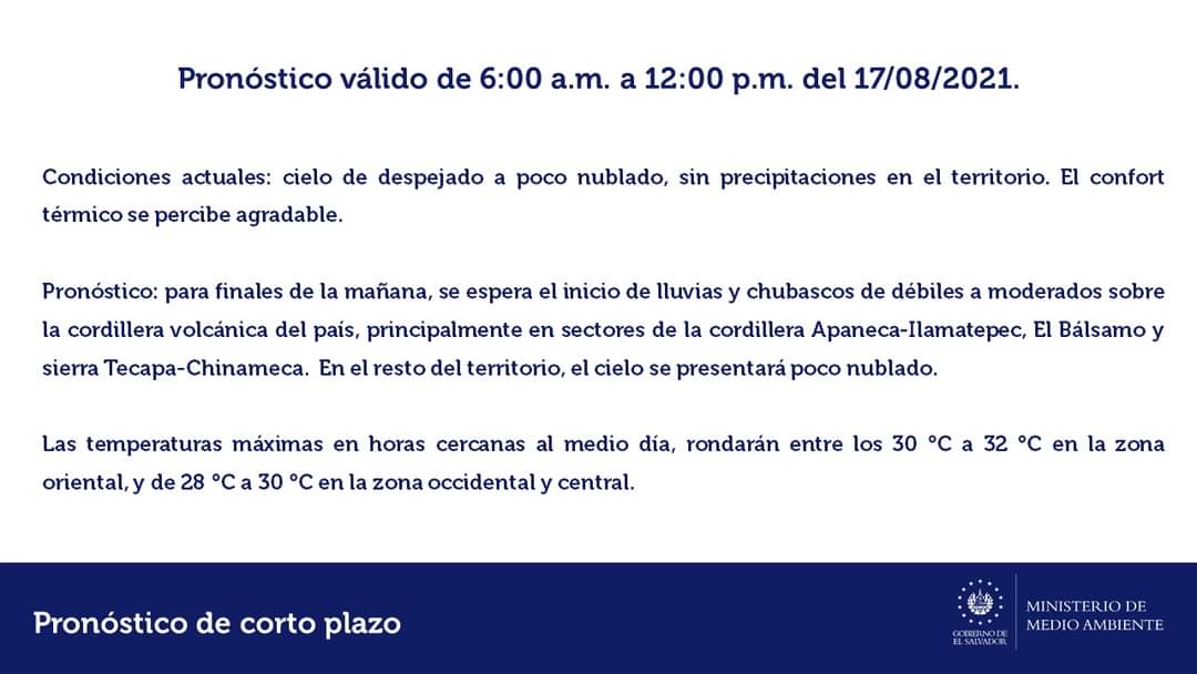 #Clima|| El observatorio informa sobre el pronóstico de muy corto plazo para este día 17/08/2021 de 6:00 am a las 12:00 pm. @claserpm01@EdnaOrepic.twitter.com/br2pGaefVA