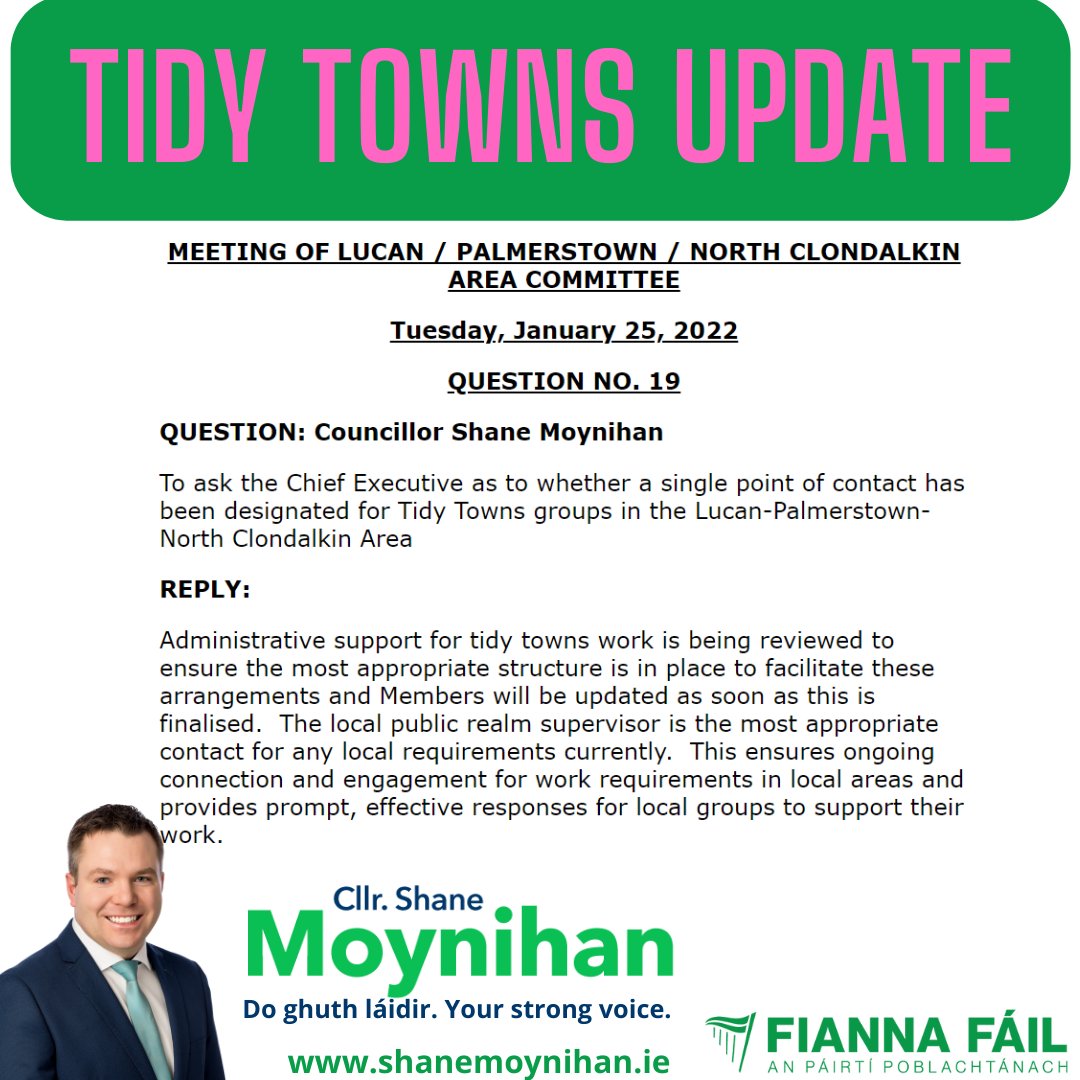 Supporting our local Tidy Towns groups is important. That's why I continue to push for a single point of contact to coordinate Council engagement with these super volunteers.