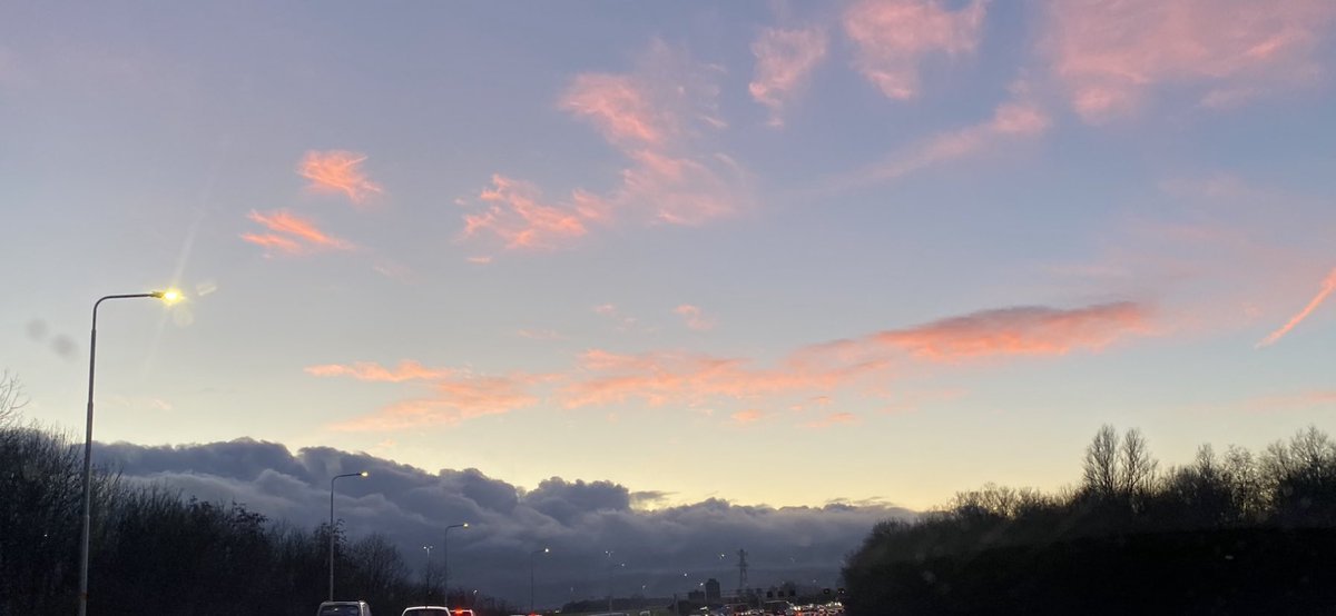 #cloudporn morning on the way down to Manchester. We think the line of cloud in the second shot is probably the jetstream currently crossing the UK, it’s unusual to see such a defined line. First pic might be Kelvin-Helmholtz cloud, can any weather buffs comment? pic.twitter.com/V7T3tdXGXr