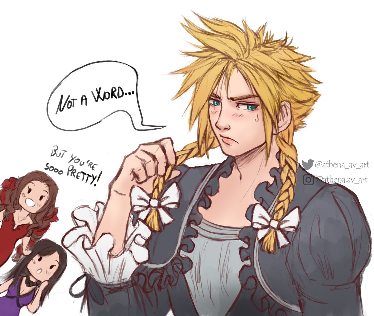 #FinalFantasyVIIRemake trailer and I LOVE how they recreated the part that they wear Cloud like a woman. I couldn't resist myself to do this little sketch XD. So excited for the game!