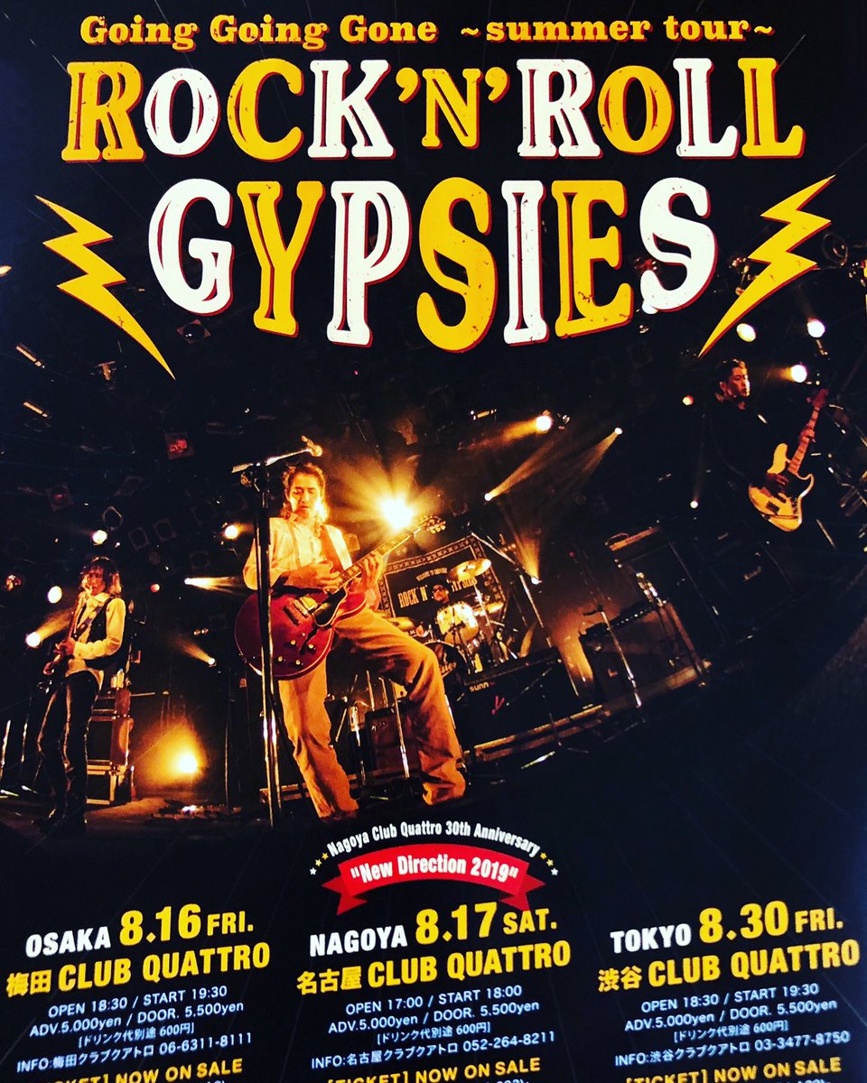 #ClubQuattro ‼︎ 30th Anniversary "New Direction 2019" 8/17✴︎名古屋クラブクアトロ Open17:00/Start18:00 昨日@club_quattro_um に お越し下さった皆様 ありがとうございます!#花田裕之#下山淳#池畑潤二#市川勝也#RocknRollGypsiespic.twitter.com/c41lNp6Ii5