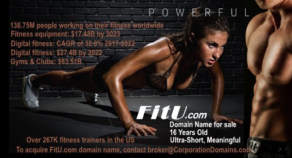 #DomainName for sale. This is an epic#DomainName in the#Fitness industry.#weight#weightloss#Diet#gym#clubs#healthclubs#trainers#gyms#spas#training#running#Digital#DigitalFitness#gettingfit#keto#nutrition#nutrition2018#Domains#VentureCapital#startuppic.twitter.com/7CS0UpUEx2