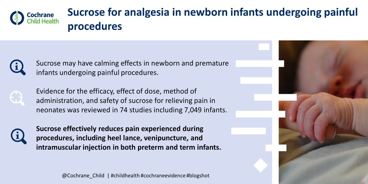 #CochraneEvidence : Sucrose for analgesia in newborn infants undergoing painful procedures | http://bit.ly/2a1jbGi pic.twitter.com/2mOHfjMz7C