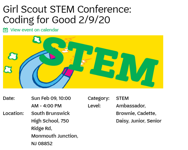 Come visit us at the Girl Scout STEM Conference- Coding for Good on 2/9/20! GO CODE Girls! STEM for ALL!!
