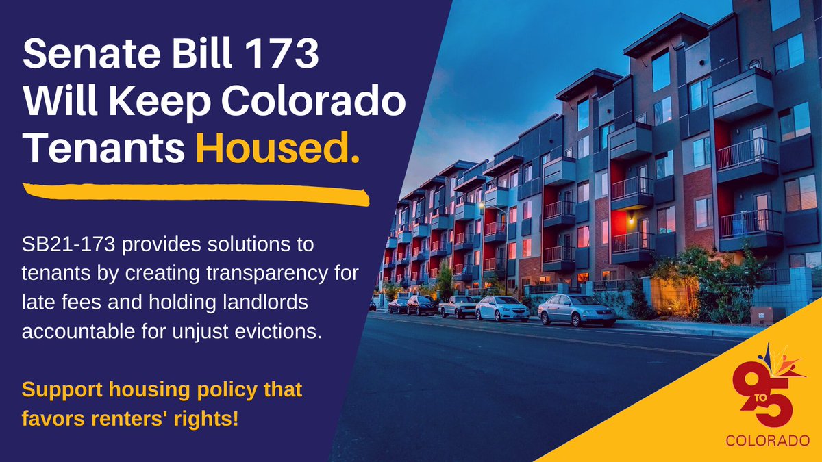 Colorado tenants deserve fundamental due process and basic protections to keep them housed. SB21-173 will create housing policy that is reliable & transparent, while also holding landlords accountable for unlawful actions.