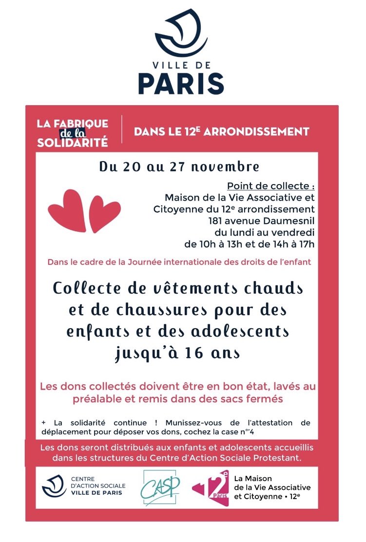 #Collecte#Paris12 Dimanche solidaire !