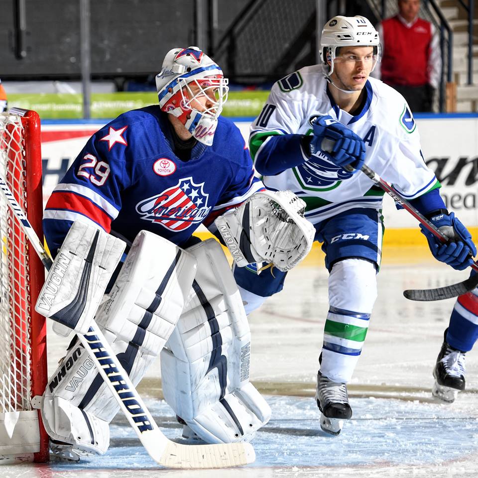 #Amerks scored three times in the third period and@wedgewall made 30 saves to earn his career-high fifth shutout of the season in 3-0 win over the#Comets.