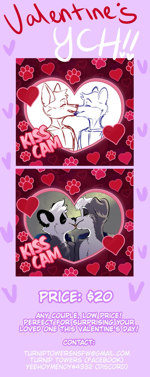 In honor of the upcoming Valentine's Day, I'm now selling YCH "Kiss Cams" for $20!