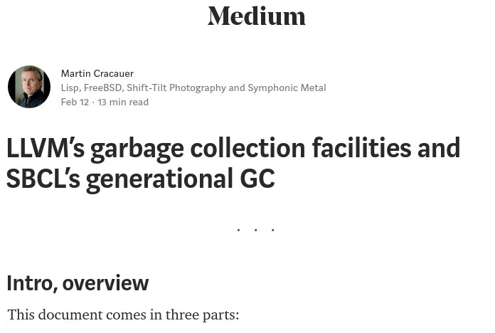 #LLVM's current mechanisms for#GC#garbagecollection, with#sbcl in mind. Also#lisp#commonlisp (correct link). https://medium.com/@MartinCracauer/llvms-garbage-collection-facilities-and-sbcl-s-generational-gc-a13eedfb1b31 …pic.twitter.com/3MzhCNAbTp