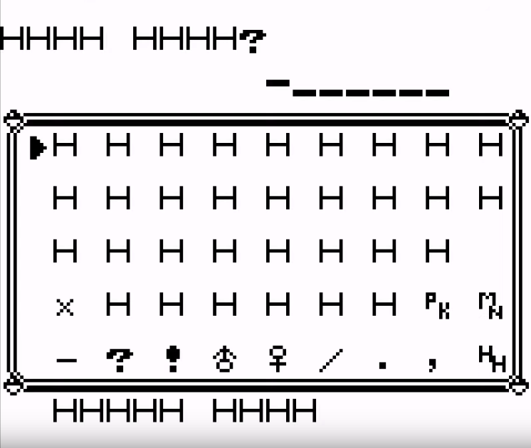Download a ROM hack called "Pokemon H", in which every single letter, number, and pokemon sprite in Pokemon Red Version is replaced with the letter "H" (