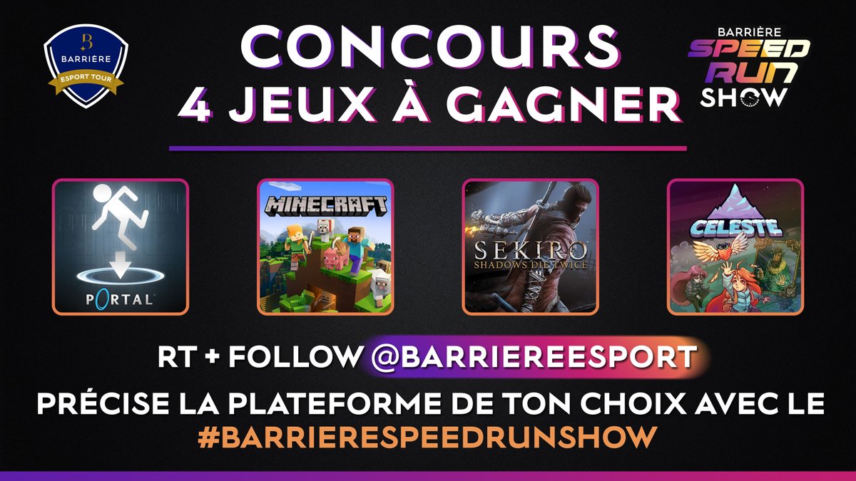 #Concours : À l'occasion du#BarriereSpeedrunShow, on vous fait gagner les 4 jeux du tournoi !